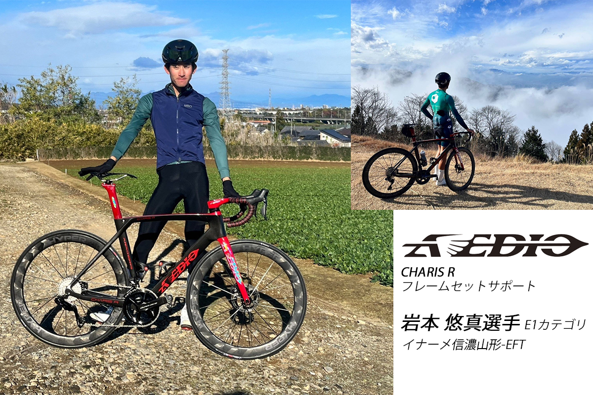 AVEDIOは 岩本 悠真 選手 (イナーメ信濃山形-EFT 所属 E1カテゴリー)に CHARIS R フレームセットをサポート提供させて頂きました。岩本選手はフィールドを選ばず、自転車を通して沢山の魅力も発信されております。私たちAVEDIOは勝利を目指す岩本選手を応援していきます。AVEDIOファミリーの皆様、ご声援よろしくお願い致します。